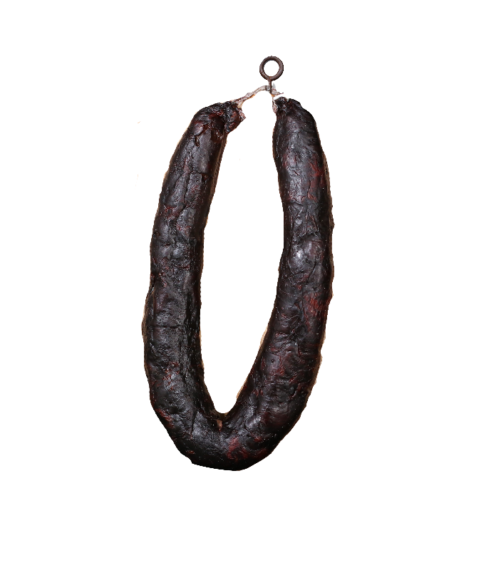 ING. Carne de suíno, sangue, vinho (sulfitos), alho, sal, sal, tripa.